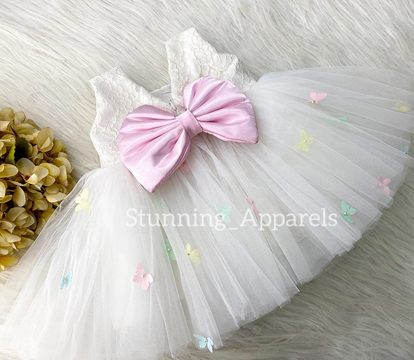 Baby Pink Satin Bow Butterfly Party Wear Dress
