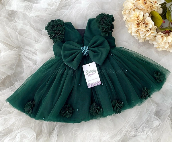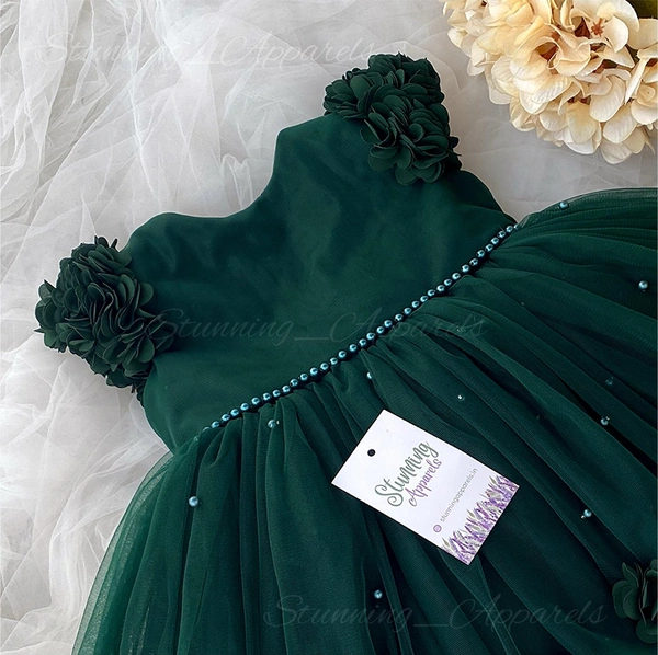 Beautiful Flower Work Cape Sleeves Partywear Green Dress