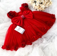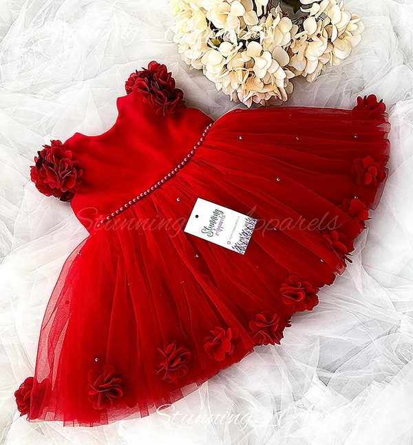 Beautiful Flower Work Cape Sleeves Partywear Red Dress