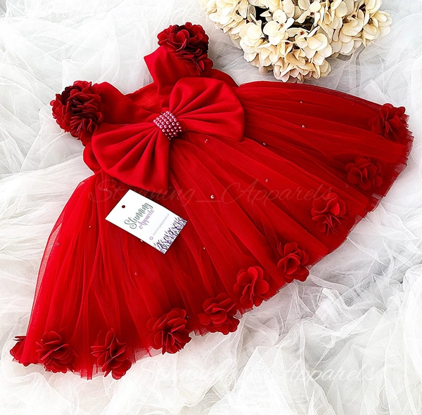 Beautiful Flower Work Cape Sleeves Partywear Red Dress