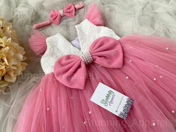 Beautiful White Pearls Work Partywear Peach Dress