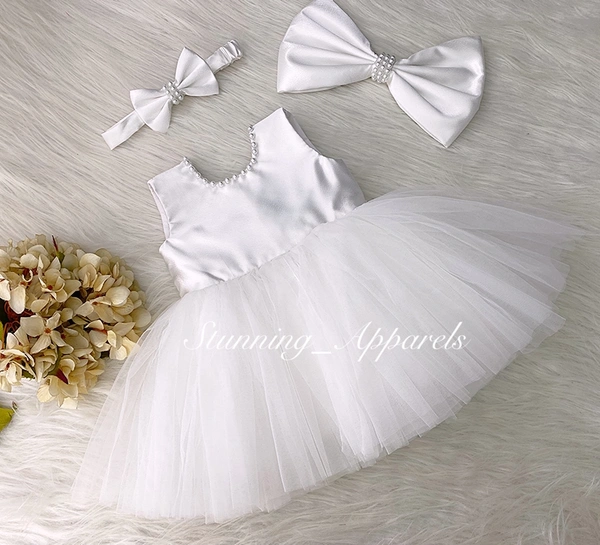 Big White Pearls Work Details White Dress