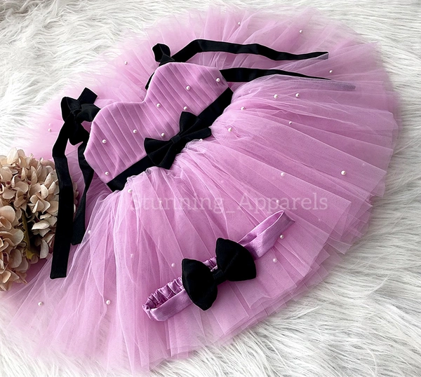 Black Satin Knotted Light Lavender Dress