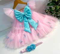 Butterfly Work Party Wear Baby Pink Dress ( Shoes Available With 0-3 Month To 1-2 Years)