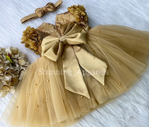 Cape Sleeves Flower Work Golden Dress