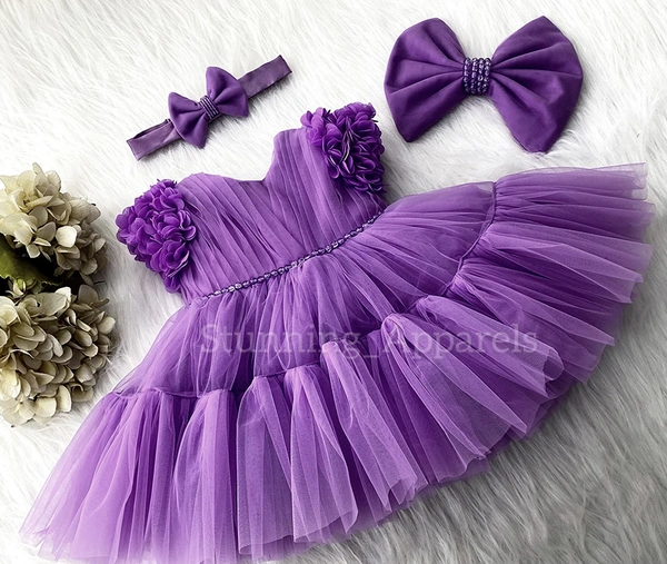 Cape Sleeves Flower Work Ruffled Dark Lavender Dress