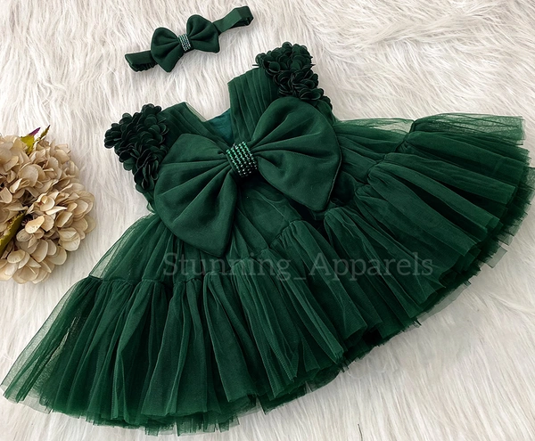 Cape Sleeves Flower Work Ruffled Green Dress