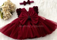 Cape Sleeves Flower Work Ruffled Maroon