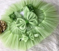 Cape Sleeves Flower Work Ruffled Pista Green Dress