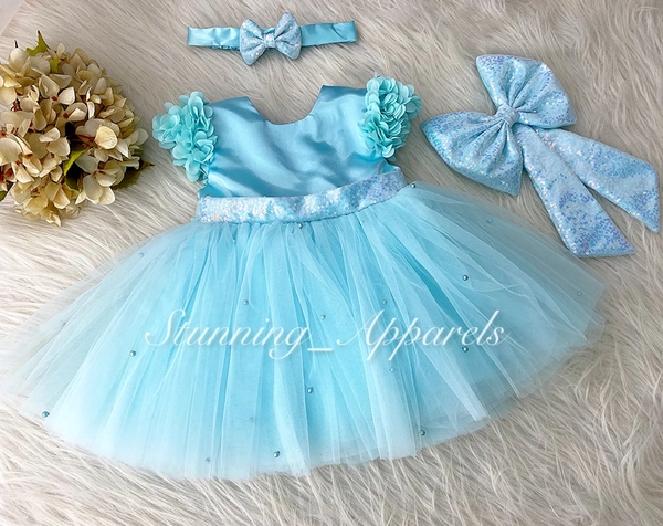 Cape Sleeves Flower Work Sky Blue Dress