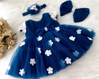 Cape Sleeves White Flower Work Teal Blue Dress