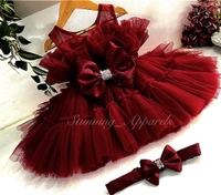 Designer Hand Work Ruffled Maroon Dress