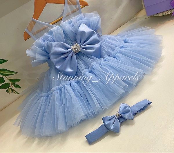 Designer Hand Work Ruffled Pastel Blue Dress