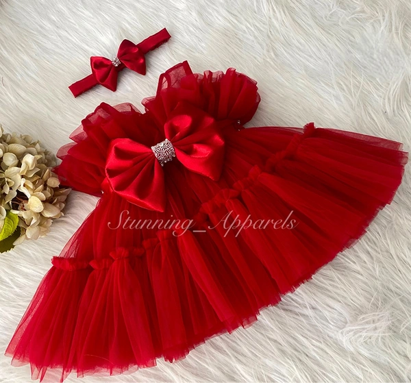 Designer Hand Work Ruffled Red Dress
