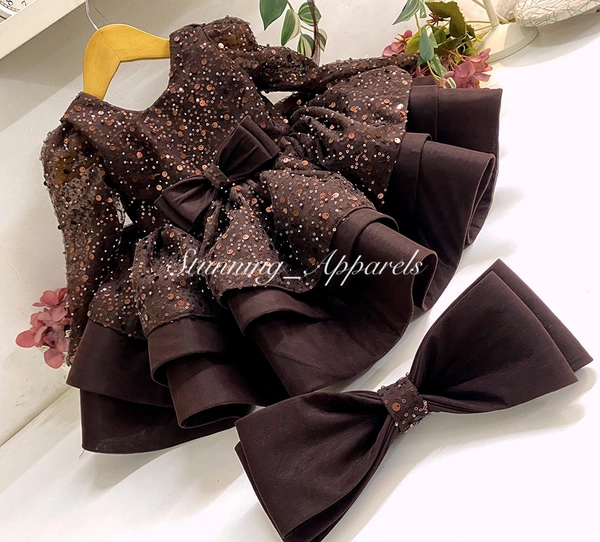 Designer Long Sleeves Bead Sequins Brown Dress