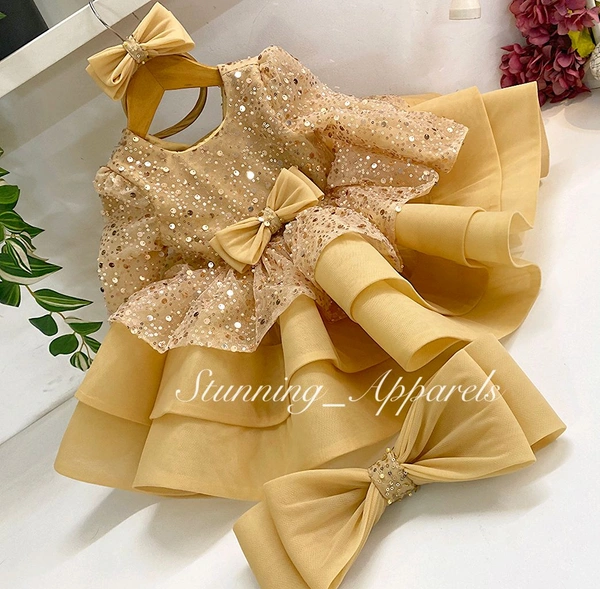 Designer Long Sleeves Beads Sequin Golden Dress