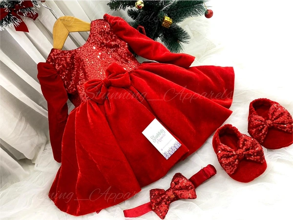 Designer Long Sleeves Red Velevet Christmas Dress