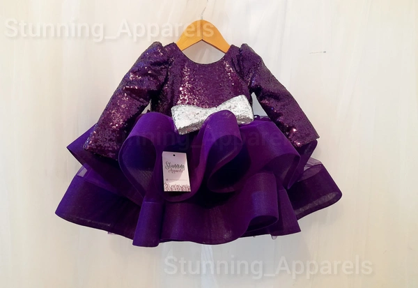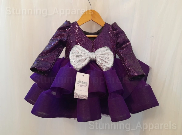 Designer Purplè Sequins Long Sleeves Partywear Frock