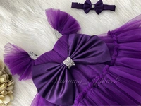 Designer Ruffled Sleeves Hand Work Purple Dress