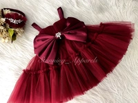 Designer Stone Work Ruffled Maroon Dress