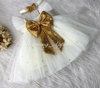 Golden Sequins Bow Cream Umbrella With Tail