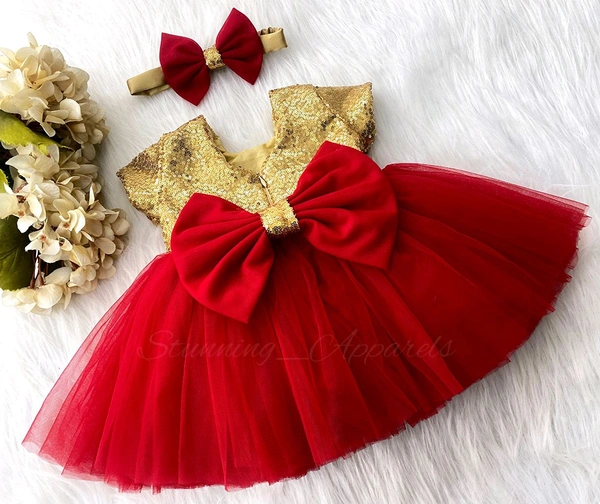 Golden Sequins Cape Sleeves Red Party Wear Dress 950