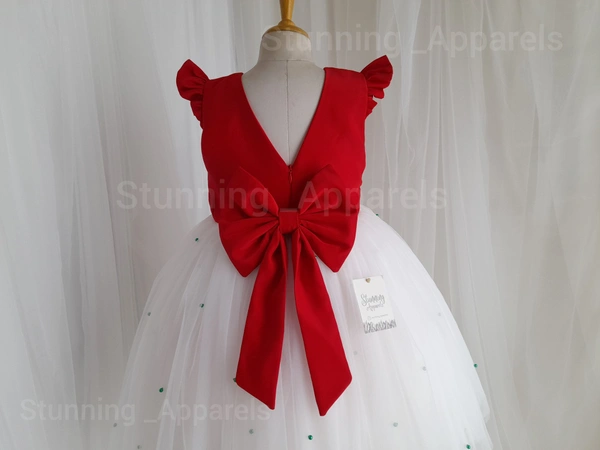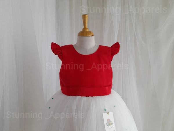 Green Pearls Work Ruffled Sleeves Frock