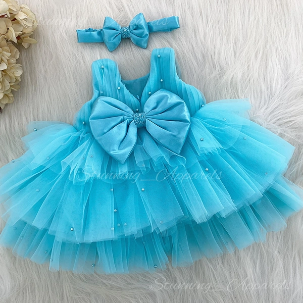 Hand Work Layers Partywear Sky Blue Frock