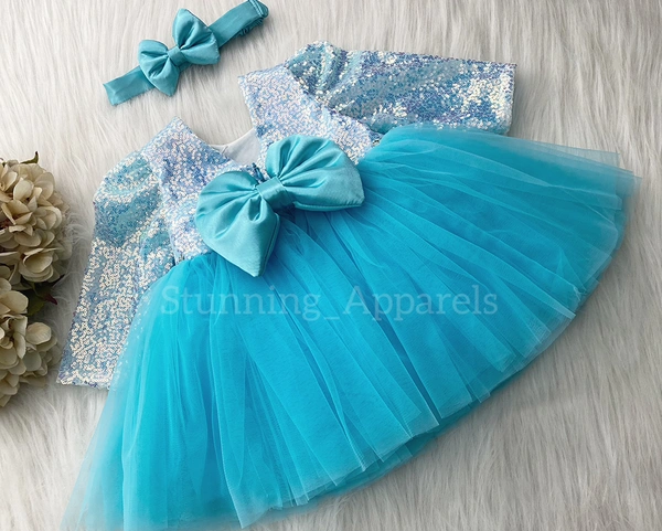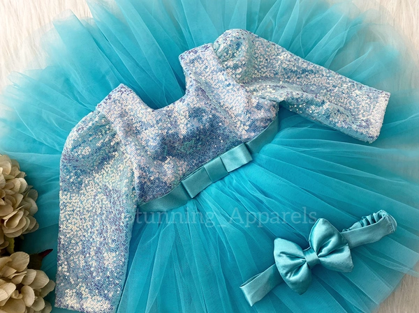 Long Sleeves , Belted Partywear Sky Blue Dress