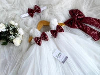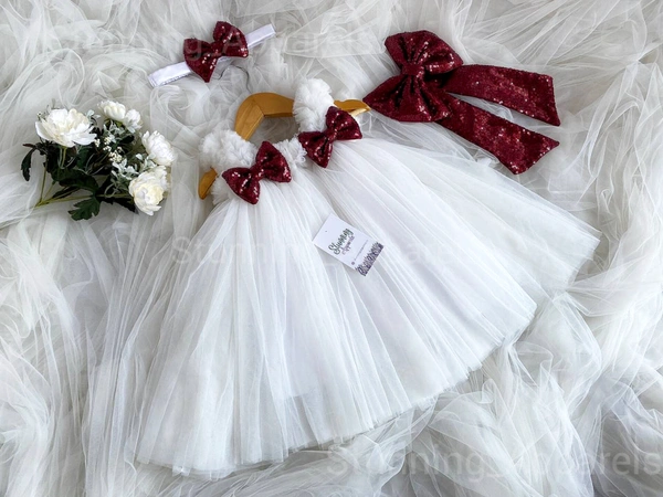 Maroon Sequence Bow Partywear White Dress