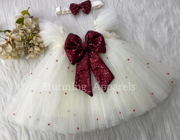 Maroon Sequins Bow Cream Umbrella Dress