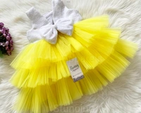 Milky Sequin Bow Three Layered Dark Yellow Dress