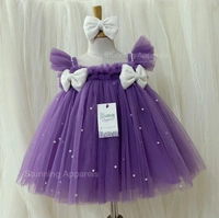Milky Sequins Bow Partywear Dark Lavender Umbrella Frock