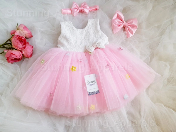 Multi Color Flowers Work Partywear Frock