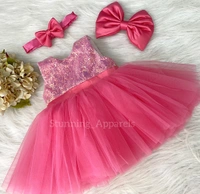 Multi Colour Sequins With Satin Bow Flemingo Pink Dress