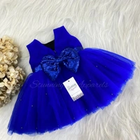 Pearls Work Stylish Partywear Royal Blue Frock