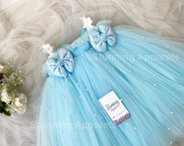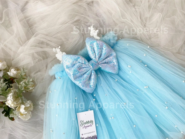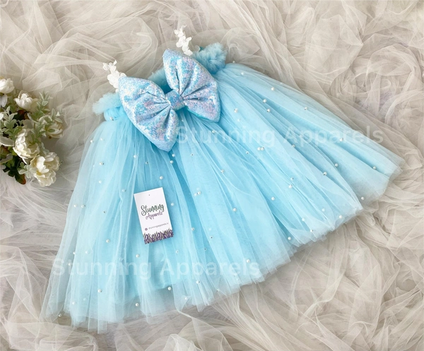 Pearls Work Whitw Flower Strapped Partywear Dress