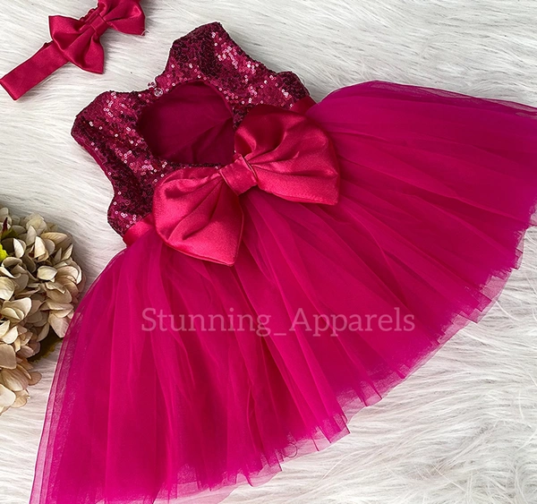 Pink Sequins Satin Bow Magenta Pink Dress