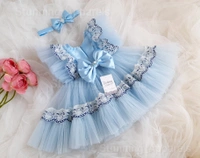 Primium Lace Work Partywear Blue Frock