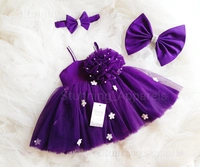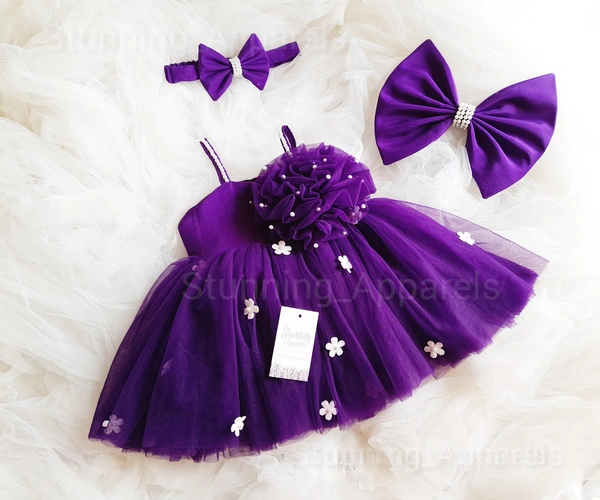 Purple White Flowers Work Partywear Frock