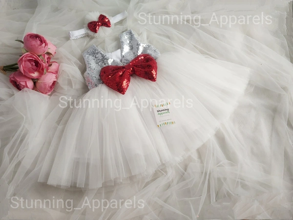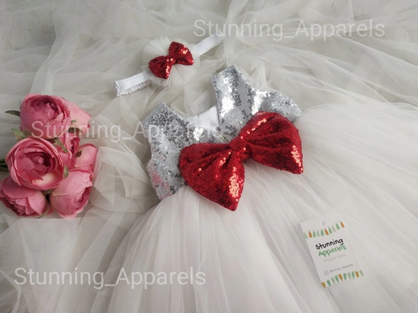 Red Sequvence Bow Partywear White Dress