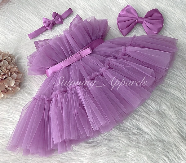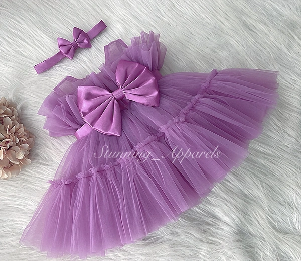Satin Bow Ruffled Light Lavender Dress