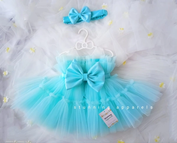 Satin Bow Ruffled Partywear Sky Blue Frock