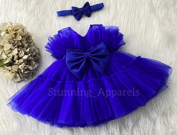 Satin Bow Stulish Ruffled Royal Blue Dress