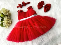 Shoulder Bow Party Wear Ruffled Red Dress