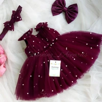 Shoulder Bow Pearls Work Wine Partywear Frock