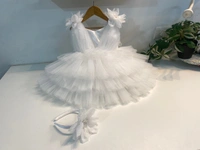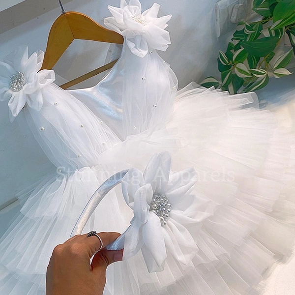 Shoulder Flower Work Layered White Dress