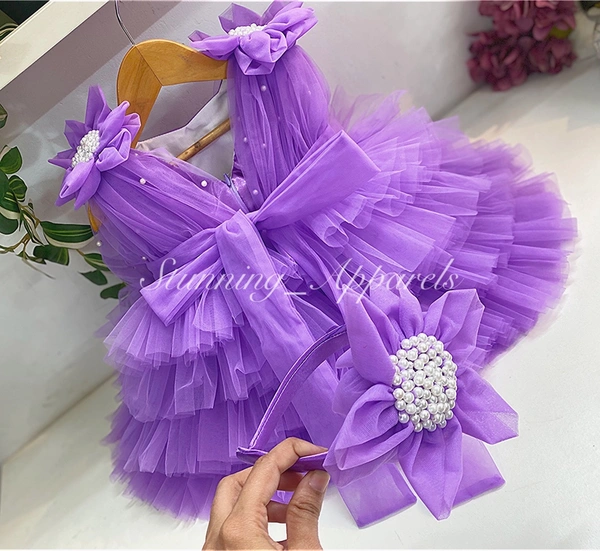Shoulder Flower Work Layered Light Lavender Dress