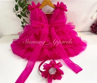 Shoulder Flower Work Layered Magenta Dress