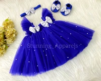 Silver Sequins Bow And White Pearls Work Royal Blue Dress